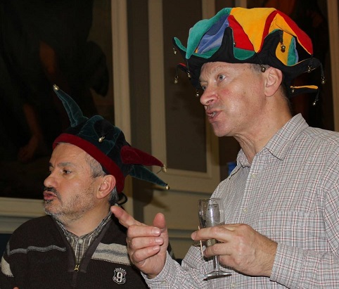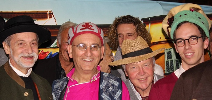 Anche i signori ci hanno sorpreso. Pur essendoci meno possibilità di scelta il risultato è stato proprio straordinario. C'erano cappelli da contadino di varie forme, da apicoltore, da gondoliere, da cuoco, da Babbo Natale... un bel panama, un tirolese ed un australiano. Una menzione speciale è andata ai cappelli da giullare portati dai nostri animatori Gianpietro Corongiu e Dominique Dogot, nonché al cappello ottomano autentico, risalente al periodo dell'Impero Ottomano in Libano portato da Hanna Mitri, il marito di Frédérique Baquet. |