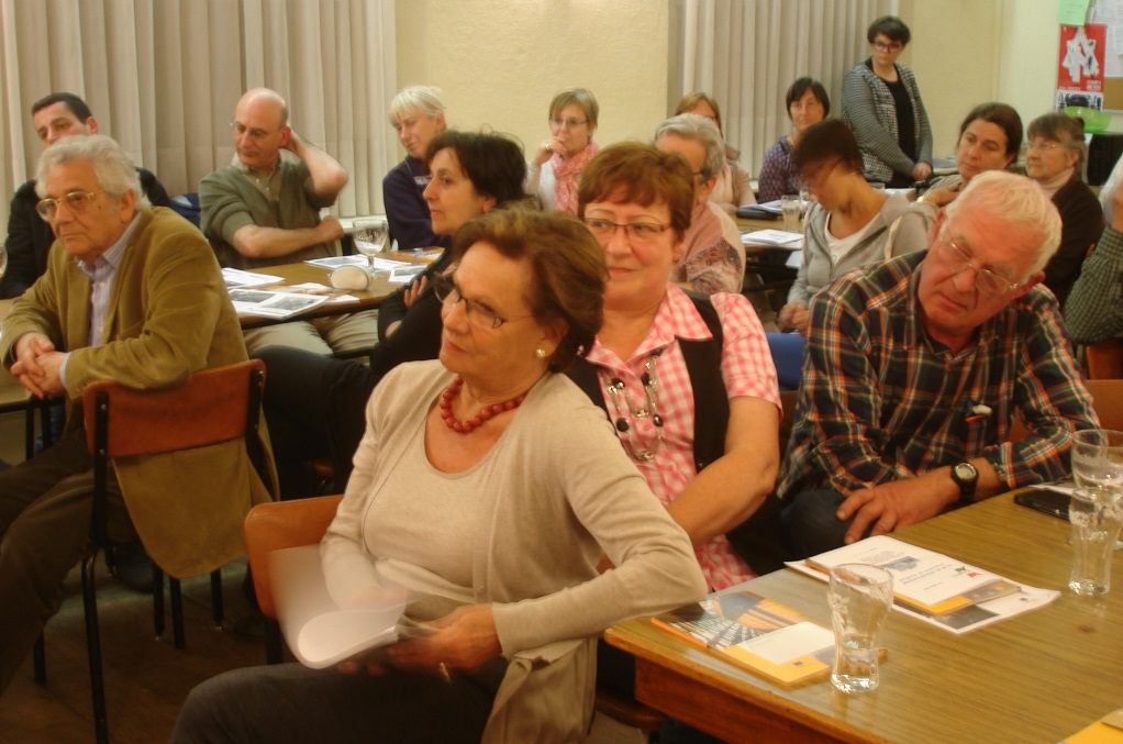 Argomento di attualità per l'ultima seduta del Club con l'intervento di due collaboratrici del Parlamento Europeo : Maria Barbara Gatto e Federica Baggio, in vista del voto per l'Europa questo 25 maggio. Ed anche se le principali istituzioni hanno la loro sede in Belgio, è un'universo quasi sconosciuto dei cittadini, o su cui si trasmettono idee lontane della realtà e le due conferenziere del giorno ci hanno aiutato a conoscere meglio i meccasinismi interni. Maria Barbara ci ha spiegato il suo lavoro di assistente parlamentare, che consiste non soltanto a documentarsi sulle varie tematiche attingenti ai vari reparti della politica europea, ma anche a facilitare al massimo la vita quotidiana del eurodeputato che sbarca a Bruxelles due settimane al mese (la terza essendo dedicata alle assemblee di Strasburgo e la quarta al contatto con il paese e la regione d'origine). Invece il luogo di lavoro principale del personale parlamentare è Bruxelles, dove si trovano anche gli uffici della Commissione. Un lavoro che necessita flessibilità, disponibilità di orari ma anche multilinguismo e senso di adattamento alle mentalità dei rappresentanti degli altri paesi. Infatti, il parlamento europeo funziona in base a gruppi politici transnazionali, ogni gruppo raduna i partiti di una stessa corrente (popolari, socialisti, liberali, verdi,...). Ne emergono le varie commissioni di lavoro, che preparano le proposte di leggi da presentare al parlamento.