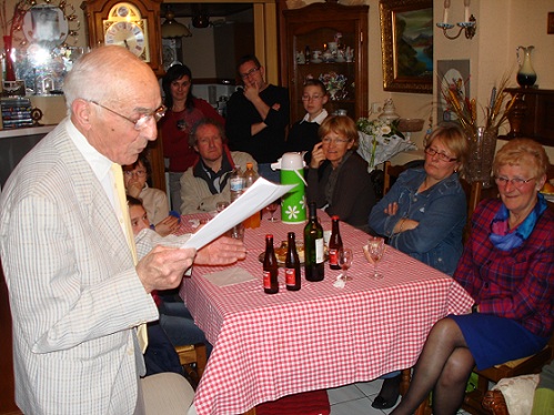 In novembre scorso, Aldino Soloperto era venuto a Tournai per incontrare i membri del club. Serata carica di storia e di emozioni ma anche di teatralità. Al termine della conferenza, Aldino Soloperto ci aveva proposto di fare un giorno o l'altro un salto fino a casa sua, a Mont-sur-Marchienne, allo scopo di visitare il Museo che lui stesso ha messo su e che ha dedicato ai caduti di Marcinelle e più in generale al lavoro in miniera. Abbiamo esaudito il suo desiderio e domenica 3 aprile scorso un bel gruppetto di soci del club si è ritrovato nel paese di Aldino. Ci ha accolto con grande dimostrazione di affetto e contentezza. Ci ha fatto visitare il suo Museo adiacente alla casa, assemblaggio commovente di strumenti da minatori, ritagli di giornali, scritti, quadri, statuette, disegni, libri, oggetti vari relativi alla miniera nonché nella parte ad aria aperta del Museo un modello ridotto di castelletto di estrazione… Dopodiché nel salotto in cui ci siamo accomodati tutti quanti Aldino ha servito vino, birra, polpette, dolci… ed ha cantato a cappella una canzone da lui stesso composta e dedicata al tragico evento di Marcinelle. Un ringraziamento a Aldino Soloperto per l'accoglienza nonché a Liliane Valerio per la preparazione dell'evento.