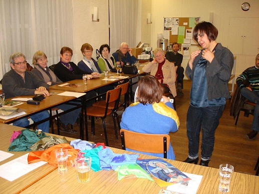 E' venuta da Liegi per parlarci dei colori. Anna Parisi, che gestisce un salone di parruccheria e di relooking nella "città ardente" è una professionista dei colori. Nel suo locale, la colorazione dei capelli è un elemento base del mestiere. E i colori, poi, sono una parte essenziale dell'apparenza di ciascuno. Ovviamente occorre rispettare, o meglio, far risaltare la personalità attraverso questi colori e gli stessi colori devono inserirsi in uno stile (taglio dei capelli, indumenti, accessori...). Di tutto questo ed altro ci ha intrattenuto la nostra ospite e, come si sa, un esempio pratico vale spesso molto di più di tante spiegazioni teoriche. Anna Parisi ha quindi voluto illustrare il suo discorso con alcuni simpatici test. Insomma, abbiamo vissuto una serata conviviale e partecipativa. Ringraziamo sentitamente Anna Parisi per aver accettato il nostro invito a Tournai. Un ringraziamento pure a Liliana Valerio che ha curato l'evento.