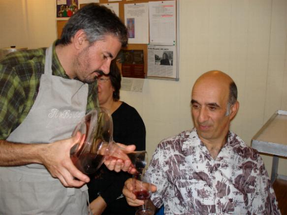 Congratuliamo i nostri amici per la qualità dell'incontro e li ringraziamo calorosamente per l'impegno. Conserveremo a lungo quell'immagine un po' surrealistica di Gianpietro e Bernard con il grembiule mentre stanno presentando i loro esposti e servendo il vino. Bravi !