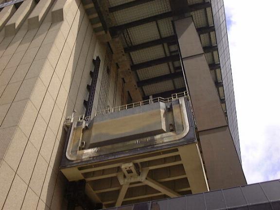 L'ascensore funziona con energia idraulica, sfruttando il principio dei vasi comunicanti.