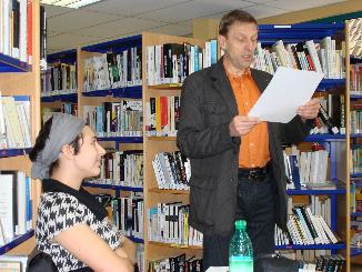 Il 16 giugno, presso la biblioteca comunale di Rumes, a Taintignies, il nostro animatore Arcangelo Petrantň ha presentato, in presenza delle autoritŕ comunali e di un pubblico vario tra cui si notava la simpatica presenza di una decina di soci del club, il suo libro di racconti brevi "La plančte verte" di recente pubblicazione. Nel corso dell'incontro l'autore ha esposto il filo conduttore che lo ha spinto dalla scrittura di testi poetici alla scrittura di racconti brevi. Egli ha letto alcune sue poesie. Sua figlia Virginia e Pascal Macou (attivo presso il Teatro della Monnaie di Bruxelles e amico di lunga data) hanno letto poi rispettivamente un racconto tratto dal libro e un racconto inedito. L'appuntamento č stato seguito da un rinfresco.