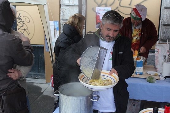 Il sabato non fu di troppo per preparare e sistemare tavoli, tabelloni, bar con un'armata intera di membri e simpatizzanti efficaci e molto concentrati a mettere tutto a posto. Abbiamo anche dovuto respingere gli assalti di curiosi che volevano già anticipare la festa…