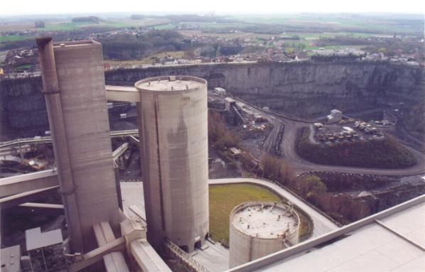 Accanto alla cava dove è estratto il calcare, i sili di Clinker, materia prima per la fabbricazione del calcestruzzo |