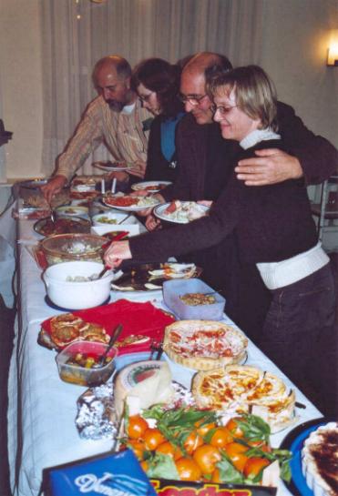 La formula abituale prevede di portare un piatto per due o tre persone con l'obiettivo di offrire un buffet variato. Ancora questa volta, tutti hanno provato la loro originalità e i loro talenti culinari: tra tante golose proposte la scelta fu difficile ! Le papille gustative se la sono proprio goduta ! Questo tipo di cena incarna benissimo lo spirito del club: d'ispirazione italiana con un modo di fare (in questo caso, un modo di mangiare) tipicamente belga.