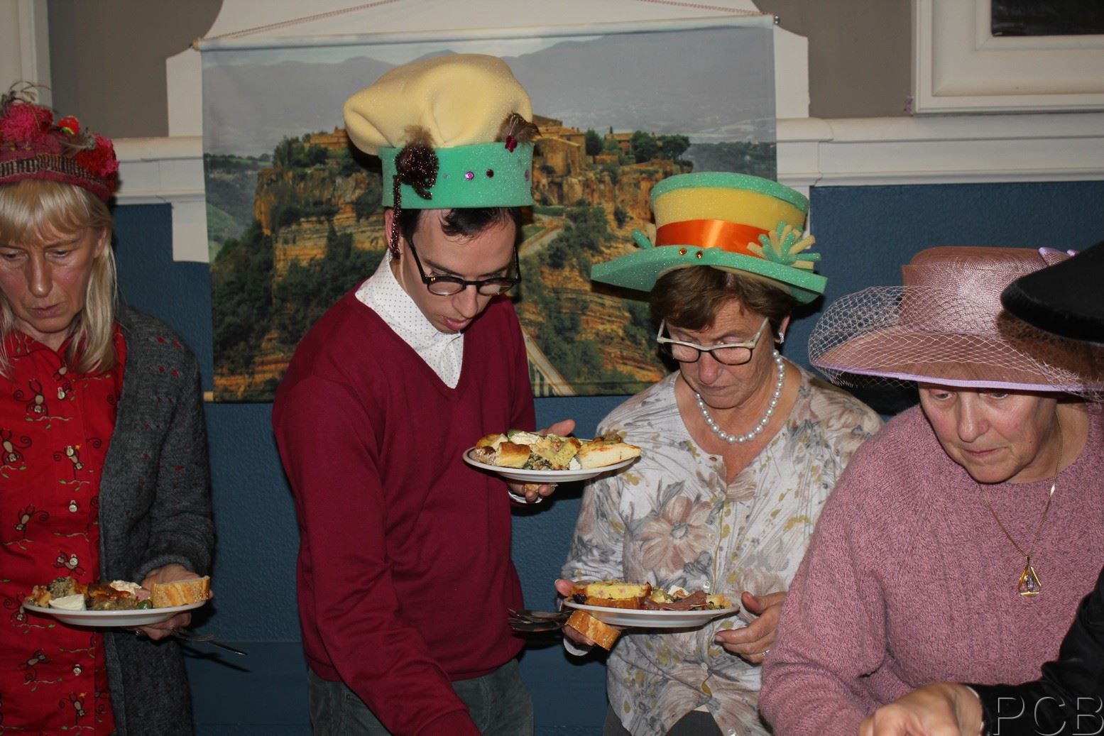 Com'eravamo eleganti, comici, orginali o unici con tutti quei cappelli più belli uno dell'altro! In occasione della cena annuale del club alla quale avevano aderito 52 persone, oltre il fatto di portare da mangiare per due o tre persone in modo da creare un bel buffet fornito di pietanze varie e saporite, il tema della serata era che ciascuno portasse un cappello. Si può dire che il risultato è stato sorprendente, magnifico, degno di una sfilata di moda a Milano.