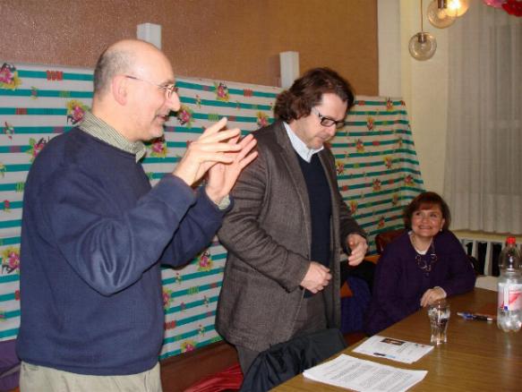 Se da un lato il cibo è assolutamente necessario per vivere e si presenta a priori come un fatto naturale, i componenti del cibo, la scelta di questi componenti, la preparazione del cibo e il modo di cibarsi costituiscono dei fatti culturali. Di questa dimensione culturale è venuto a parlarci il nostro ospite Carlo De Pascale, appassionato di cucina italiana, chef ristoratore, personaggio mediatico, creatore e responsabile dell'accademia di cucina "Mmmmh!" sita a Bruxelles. Nel suo intervento, fluido e convincente, ha voluto dimostrare che la cucina svolge una funzione unitaria nella società italiana. Il ruolo di certi prodotti (tipo pasta, olio di oliva, vino, caffè espresso, aperitivo o digestivo amaro...) e la stessa sequenza e natura dei piatti (primo, secondo...) che son serviti quotidianamente in Italia dall'estremo nord all'estremo sud della penisola, ne sono la prova. |