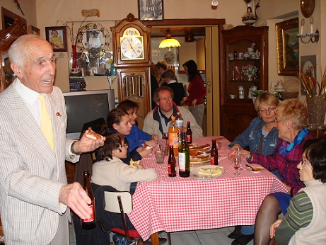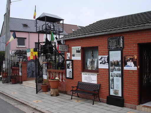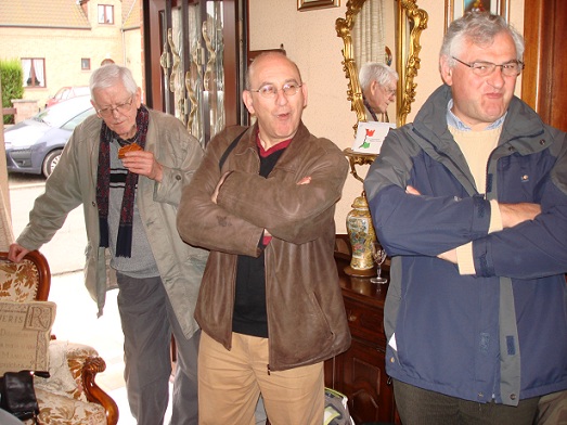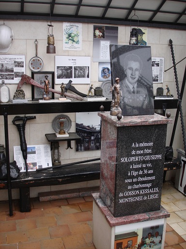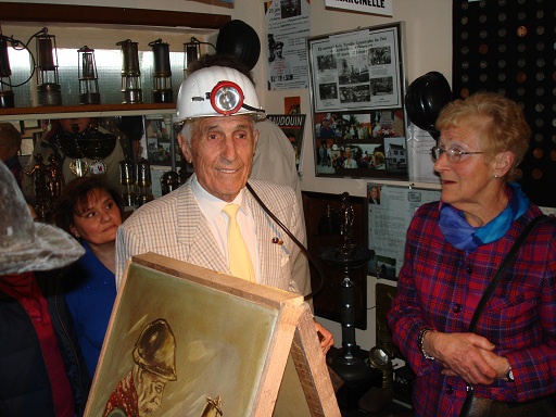 In novembre scorso, Aldino Soloperto era venuto a Tournai per incontrare i membri del club. Serata carica di storia e di emozioni ma anche di teatralità. Al termine della conferenza, Aldino Soloperto ci aveva proposto di fare un giorno o l'altro un salto fino a casa sua, a Mont-sur-Marchienne, allo scopo di visitare il Museo che lui stesso ha messo su e che ha dedicato ai caduti di Marcinelle e più in generale al lavoro in miniera. Abbiamo esaudito il suo desiderio e domenica 3 aprile scorso un bel gruppetto di soci del club si è ritrovato nel paese di Aldino. Ci ha accolto con grande dimostrazione di affetto e contentezza. Ci ha fatto visitare il suo Museo adiacente alla casa, assemblaggio commovente di strumenti da minatori, ritagli di giornali, scritti, quadri, statuette, disegni, libri, oggetti vari relativi alla miniera nonché nella parte ad aria aperta del Museo un modello ridotto di castelletto di estrazione… Dopodiché nel salotto in cui ci siamo accomodati tutti quanti Aldino ha servito vino, birra, polpette, dolci… ed ha cantato a cappella una canzone da lui stesso composta e dedicata al tragico evento di Marcinelle. Un ringraziamento a Aldino Soloperto per l'accoglienza nonché a Liliane Valerio per la preparazione dell'evento.