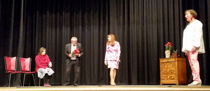 La bellissima iniziativa proveniva da Béatrice Wallaert, socia del club, che fa parte di un gruppo di attori che ha la sede a pochi chilometri di Tournai: il laboratorio teatrale del Centro culturale italiano di Lilla "Linea Diretta". La compagnia, composta da quattro attori, Jean-François Pira (attore professionista - Renato), Béatrice Maes-Wallaert (Roberta), Anne Froissart (Bianca) e Valeria Di Meglio (Angela), tutte e tre dilettanti e appassionate di teatro, è venuta a recitarci un adattamento di una commedia in due atti di Aldo Lo Castro, intitolato Renato. La trama dello spettacolo proposto alla quarantina di persone tra cui soci del club, studenti dei corsi serali di lingua italiana di Kain, e membri del Centro culturale italiano di Lilla era quella : "tre sorelle si trovano costrette a convivere nella stessa casa: Roberta, dalla forte personalità ma assolutamente priva di talento, tenta di sfondare nel mondo del teatro. Angela, dolce e remissiva, vive in un mondo di fantasia. Bianca, la maggiore, costretta a rimanere zitella e a prendersi cura delle due sorelle ingrate. Arriva improvvisamente un bellissimo mazzo di rose con un bigliettino anonimo e una strana telefonata…" Una bella serata, divertente, comica che ha riunito diverse persone con una passione comune: la lingua e la cultura italiana. Dopo la seduta, gli spettatori hanno potuto incontrare gli attori che hanno apprezzato le nostre birre belghe. Anche il nostro presidente Dominique Dogot è stato attore in quanto "tecnico del suono e responsabile delle luci del palcoscenico". Comunque, una bella esperienza da ripetere! Dominique Dogot |