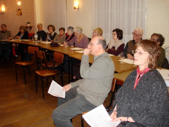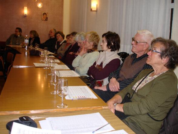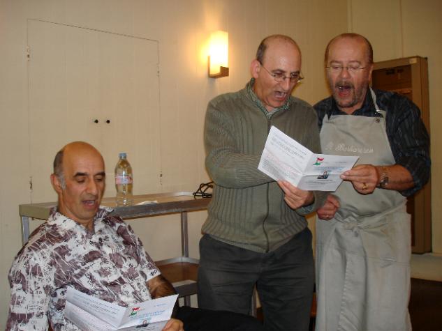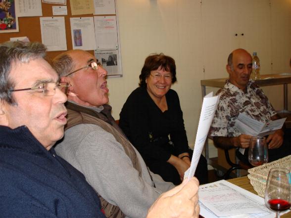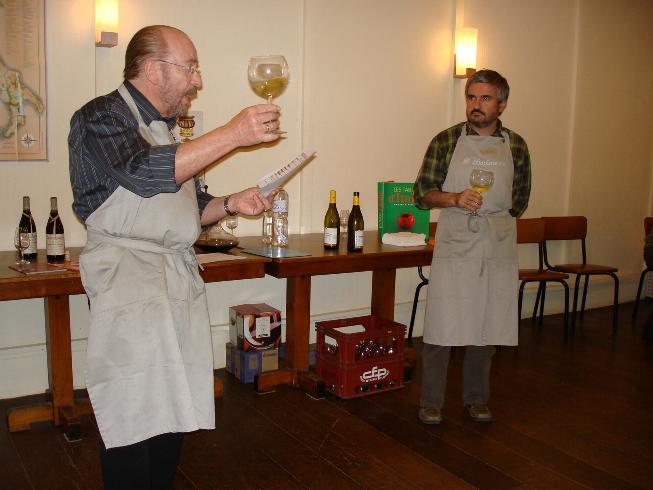 Congratuliamo i nostri amici per la qualità dell'incontro e li ringraziamo calorosamente per l'impegno. Conserveremo a lungo quell'immagine un po' surrealistica di Gianpietro e Bernard con il grembiule mentre stanno presentando i loro esposti e servendo il vino. Bravi !