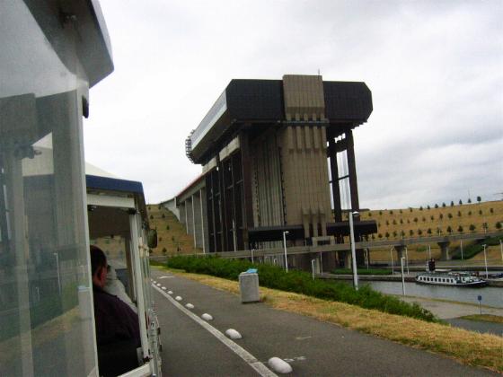 Un trenino ci ha trasportati dall'ascensore n° 3 del canale antico all'ascensore moderno di Strépy-Thieu (ascensore funicolare), opera colossale, impressionante davvero.