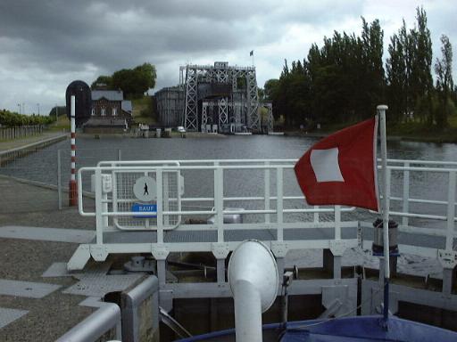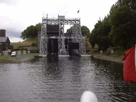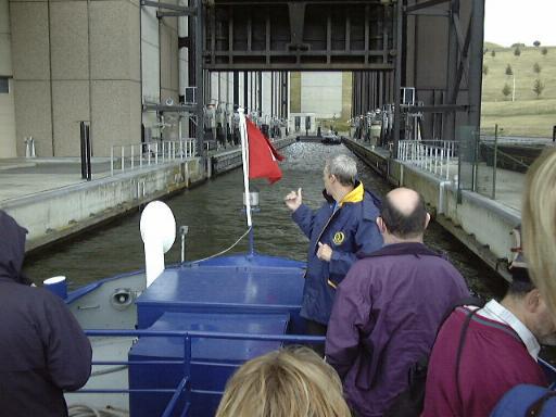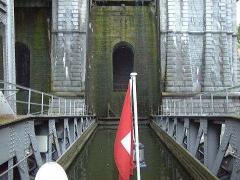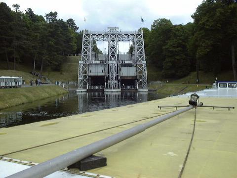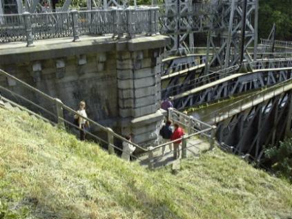 Il battello è giunto poi, tramite una chiusa, al vecchio, glorioso e geniale ascensore idraulico, tuttora funzionante (considerato parte del patrimonio mondiale dall'Unesco).