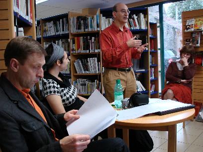 Il 16 giugno, presso la biblioteca comunale di Rumes, a Taintignies, il nostro animatore Arcangelo Petrantň ha presentato, in presenza delle autoritŕ comunali e di un pubblico vario tra cui si notava la simpatica presenza di una decina di soci del club, il suo libro di racconti brevi "La plančte verte" di recente pubblicazione. Nel corso dell'incontro l'autore ha esposto il filo conduttore che lo ha spinto dalla scrittura di testi poetici alla scrittura di racconti brevi. Egli ha letto alcune sue poesie. Sua figlia Virginia e Pascal Macou (attivo presso il Teatro della Monnaie di Bruxelles e amico di lunga data) hanno letto poi rispettivamente un racconto tratto dal libro e un racconto inedito. L'appuntamento č stato seguito da un rinfresco.