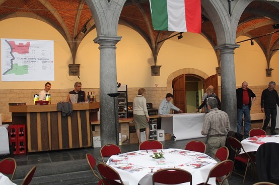 14 stand di cui 6 sono stati tenuti e animati da soci del club: Francesco Azzaretto (atelier pizze: ± 35 pers.), Maria Fortino (Maison Veloce), Mario Biccai (Saveurs d'Italie), Bernadette Debetencourt (atelier calligrafia: ± 15 pers.), Amélie Dogot (atelier bambini: ± 35 bambini), stand del club, Gianpietro Corongiu (capocuoco del ristorante) e Pietro Populin, cognato di Liliana Valerio (atelier pasta fresca: ± 50 pers.).