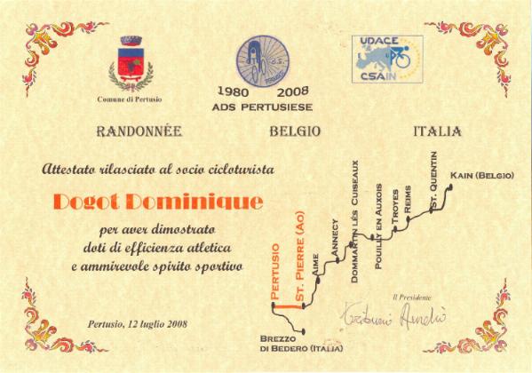 Il mio caro amico Dominique ce l'ha fatta : ha compiuto con successo il suo raid ciclistico Tournai-Pertusio (Piemonte) di più di mille chilometri.